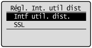 Sélectionnez [Intf util. dist.] à l'aide de [  ] et de [  ], puis appuyez sur [OK].
