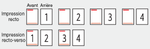 Le réglage de cette option détermine la face du papier à imprimer. Chargez le papier dans l'orientation qui convient.