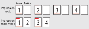 La position d'impression de la seconde page dépend des paramètres de chaque alimentation papier.