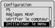 Si le message <Echec initialisation.> apparaîtSi le message <Echec initialisation.> apparaît pendant l'initialisation du menu [Configuration], la réinitialisation du menu [Configuration] n'est pas effectuée.