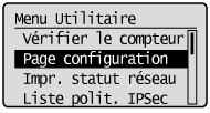 Sélectionnez [Page configuration] ou [Impr. statut réseau] à l'aide de [