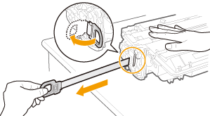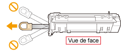 ![]() Si la bande isolante s'arrête à mi-chemin, tirez-la entièrement hors de la cartouche d'encre. S'il reste de la bande isolante dans la cartouche, cela peut altérer la qualité d'impression.