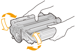 Secouez la cartouche cinq ou six fois comme illustré ci-après, afin de répartir l'encre uniformément à l'intérieur.