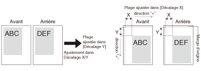 Régler les paramètres [Décalage Y] et [Décalage X] à l'aide du panneau de commandes de l'imprimante.