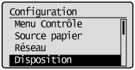 Sélectionnez [Disposition] à l'aide de [  ] et de [  ], puis appuyez sur [OK].