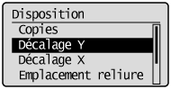 Sélectionnez [Décalage Y] à l'aide de [  ] et de [  ], puis appuyez sur [OK].