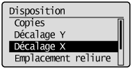 Sélectionnez [Décalage X] à l'aide de [  ] et de [  ], puis appuyez sur [OK].