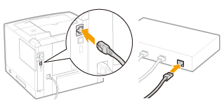 Il s'agit d'un câble réseau (LAN) utilisé pour connecter directement l'imprimante et l'ordinateur, sans concentrateur (réseau LAN).
