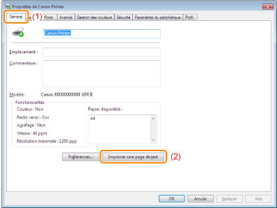 Cliquez sur [Imprimer une page de test] pour lancer l'opération.