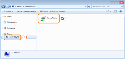 Sélectionnez le serveur d'impression dans [Réseau] ou [Favoris réseau].