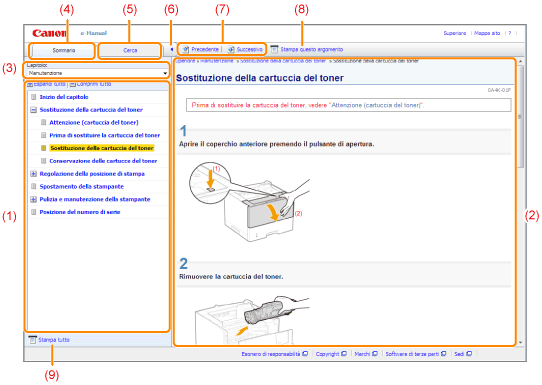 Fare clic per visualizzare o nascondere il riquadro dei contenuti/il pannello di ricerca del capitolo.