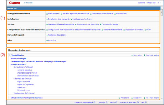Mostra tutti i capitoli e le sezioni dell'e-Manual. Fare clic su una voce per visualizzare i contenuti corrispondenti.