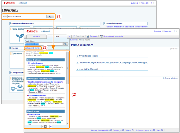 Inserendo una stringa di caratteri in [Cerca] nella pagina principale oppure nella casella di testo [Parola chiave] del pannello di ricerca e poi facendo clic su [