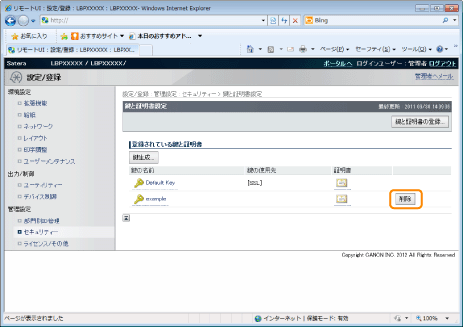 鍵が使用鍵として設定されていない場合にのみ、[削除]が表示されます。