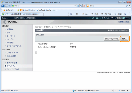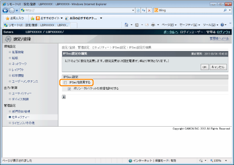 ポリシー外パケットを受信するために、「ポリシー外パケットの受信を許可する」にチェックマークを付けます。