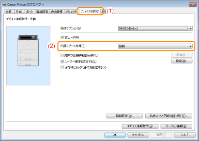設定を変更するには、次の手順で[内部スプール処理]を[自動]に変更してください。