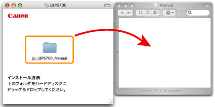 「jp_LBP6700_Manual」フォルダーを保存する場所へドラッグ・アンド・ドロップします。