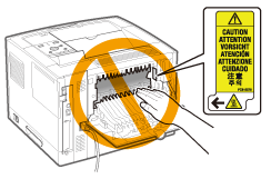 ![]() ![]() 排紙直後の用紙は、熱くなっている場合があります。特に連続印刷した場合は、用紙を取り除くときや、取り除いた用紙を揃えるときに注意してください。やけどの原因になることがあります。