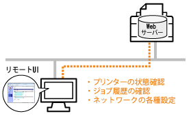 Webブラウザーからネットワークを経由してプリンターにアクセスして操作を行うため、プリンターから離れた場所にあるコンピューター上で管理することができます。