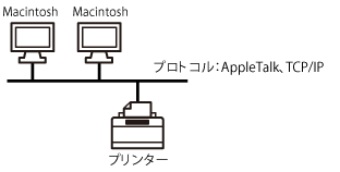 Macintoshでは、AppleTalk、TCP/IPのいずれかを使用することができます。