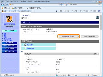 本プリンターは通信方式やEthernetの種類を自動的に判別しますので、通常は[自動検出]に設定してください。
