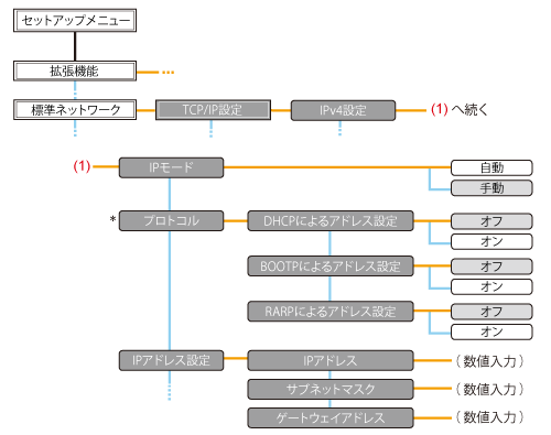 「プロトコル」は「IPモード」が「自動」に設定されている場合にのみ表示されます。