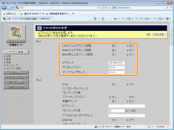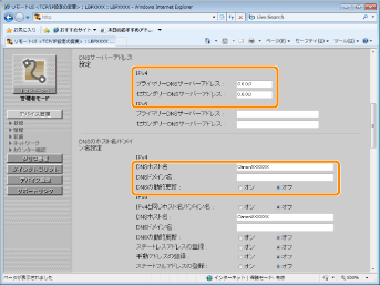 DNSサーバーなどの設定をする場合は、リモートUIやFTPクライアントを使用してください。
