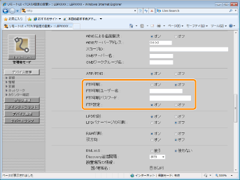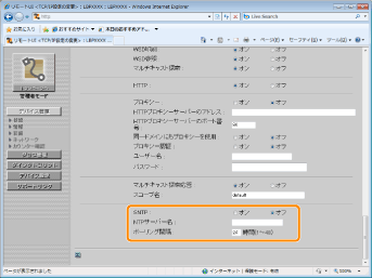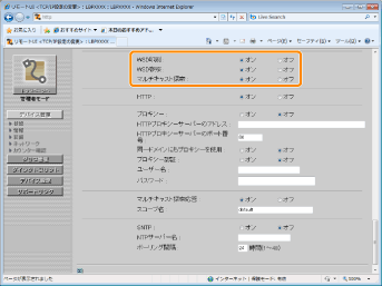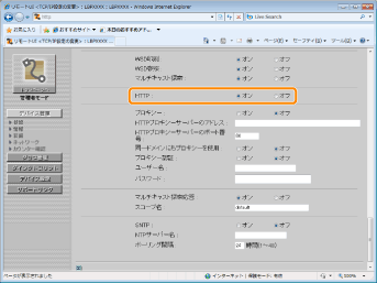 [HTTP]を[オフ]に設定したとき[HTTP]を[オフ]に設定した場合、次の項目は自動的に設定されます。