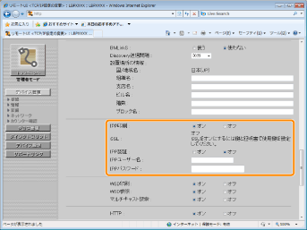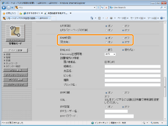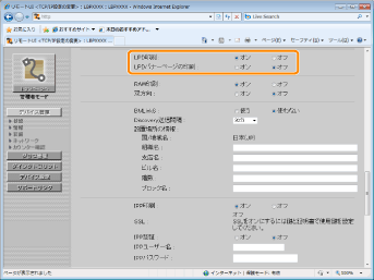 IPPS(IPPの通信データのSSLによる暗号化)を使用するときは、[SSL]を[オン]に設定します。