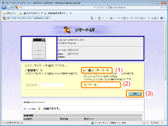 SSLによる暗号化通信を利用するときは、「https://<プリンターのIPアドレスまたは名前>/」を入力します。[セキュリティ警告]ダイアログボックスなどが表示された場合は、メッセージにしたがって対処してください。
