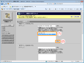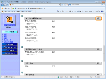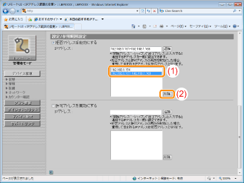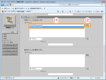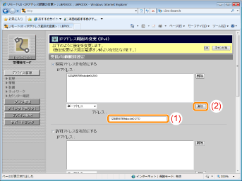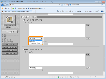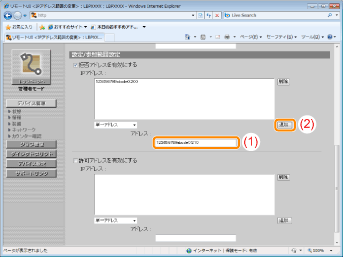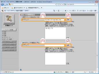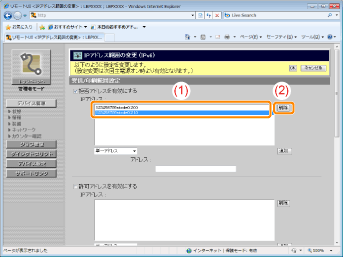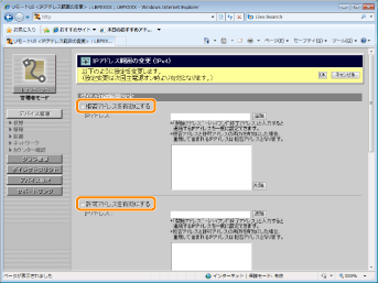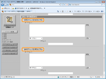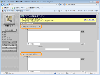 [設定/参照範囲設定]の[拒否アドレスを有効にする]または[許可アドレスを有効にする]にチェックマークを付けます。