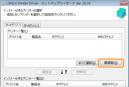 [自動再探索]をクリックして、ネットワーク上のプリンターを再探索します。
