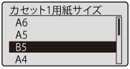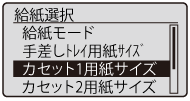 ]で「カセット1用紙サイズ」または「手差しトレイ用紙サイズ」を選択し、[OK]を押します。