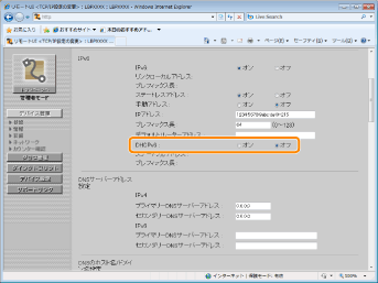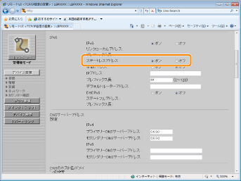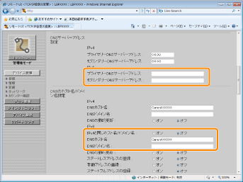 IPv4と同じ名称を使用するときは、[IPv4と同じホスト名/ドメイン名]を[オン]に設定します。