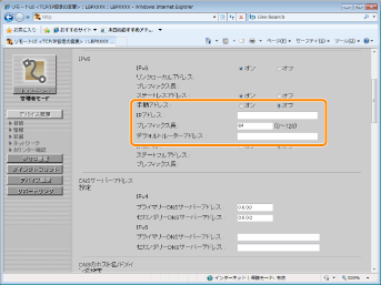 [IPv6]の[プライマリーDNSサーバーアドレス]に、プライマリーDNSサーバーのIPアドレスを入力します。