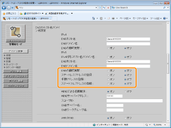 DNSの動的更新機能を使用するときDNSサーバーのIPアドレスとホスト名、ドメイン名の設定が必要です。