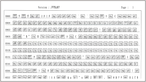 」、文字コードA0h(16進コード)は「A0」で印字されます。制御コードは大文字で、省略記号は小文字で印字されます。