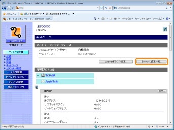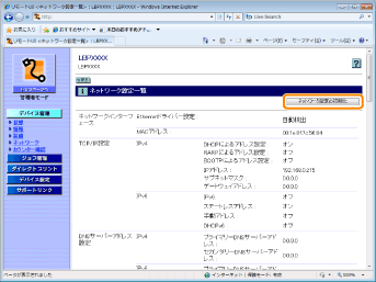 [ネットワーク設定一覧]をクリックします。