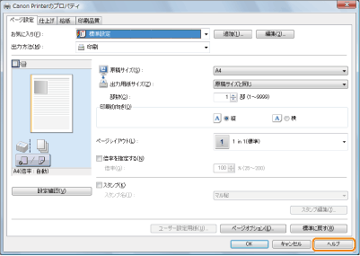プリンタードライバー画面の[ヘルプ]をクリックすると、ヘルプが表示されます。