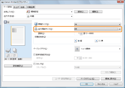 選択した用紙サイズやお使いのプリンターの機種によっては、適切な拡大/縮小印刷を設定できない場合があります。