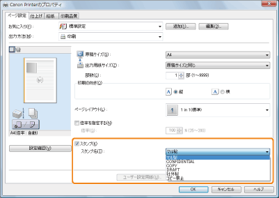 お使いのOS、プリンタードライバーの種類およびバージョンによって画面が異なることがあります。