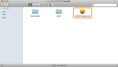お使いのMacintoshにUser Software CD-ROMをセットするとデスクトップに表示されるCD-ROMのアイコンをダブルクリックします。CD-ROM内のプリンタードライバー名のフォルダーに、インストーラーとMacintosh用マニュアルが入っています。