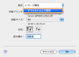 Mac OS X 10.5.xの場合、アプリケーションソフトウェアによっては、[ページ設定]ダイアログは表示されません。