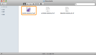 Macintosh用マニュアルは[Documents]フォルダーまたはインストーラーと同じフォルダーに入っています。
