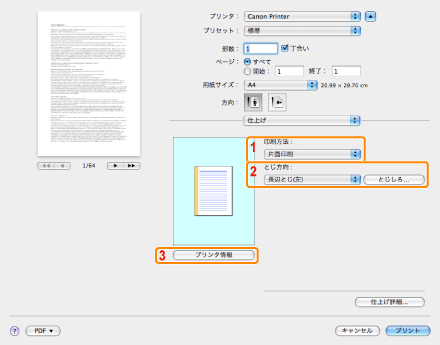 用紙の表と裏に印刷を行います。(→「両面印刷を行う」)