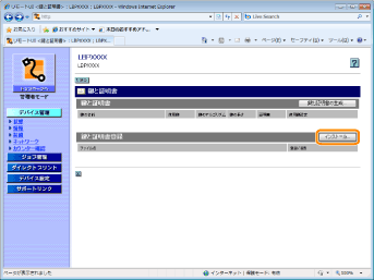 プリンターにインストールした鍵と証明書ファイルの鍵ペア(公開鍵と秘密鍵)と証明書を本プリンターで使用できるようにする場合は、鍵と証明書ファイルのインストールが完了したあと、「鍵と証明書をプリンターに登録する」を参照して、鍵ペア(公開鍵と秘密鍵)と証明書をプリンターに登録します。 |