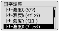 ]で目的の色のトナー濃度を選択し、[OK]を押します。