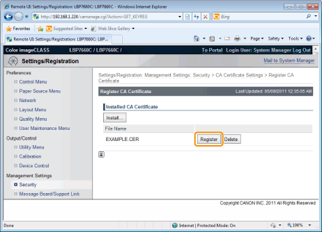 Click [Register CA Certificate...].