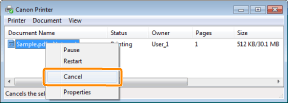If you cannot cancel a jobYou cannot cancel the job whose pages are in the process of printing.