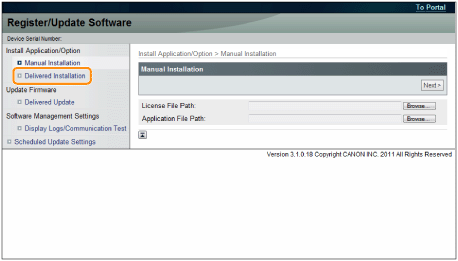 The manual for system options/MEAP applicationsYou can download the manual for the installed system options/MEAP applications by accessing the URL for the manual download site displayed on the Installation Result screen.